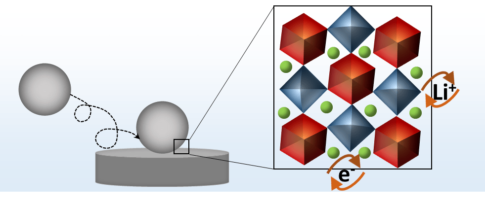 Nano impact electrochemistry also enables us to study active alkali-ion insertion materials for battery applications at the single-particle level. The current signal associated with each nanoparticle collision provides mechanistic information, e. g. about the rate-limiting step of the charging/discharging process in a battery. For instance, nano impact experiments of individual TiO2 particles in non-aqueous media reveal that their intrinsic lithiation rate is not limited by interfacial ion transfer kinetics, mobility of ion and/or electrons in the bulk of the particle, but by the solid-solid electron transfer.[3]